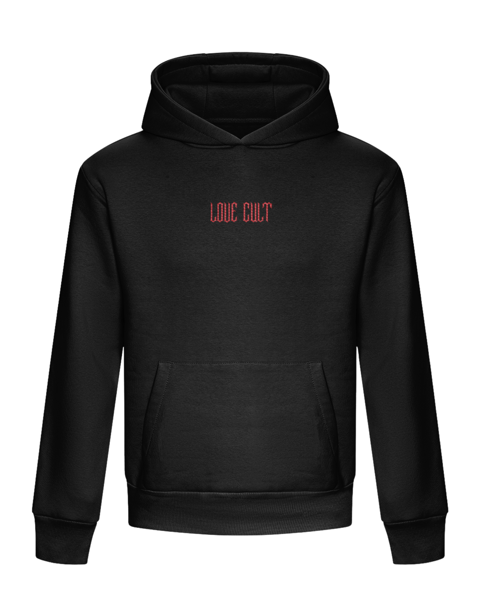 They say the first rule of Love Cult is simple: you don’t join, you’re chosen. Chosen by the wounds you carry. Chosen by the nights you didn’t survive unscathed. This hoodie is a mark, stitched in deep red, like a name carved into skin.